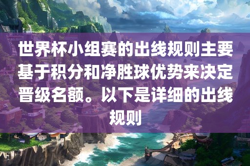 世界杯小组赛的出线规则主要基于积分和净胜球优势来决定晋级名额。以下是详细的出线规则