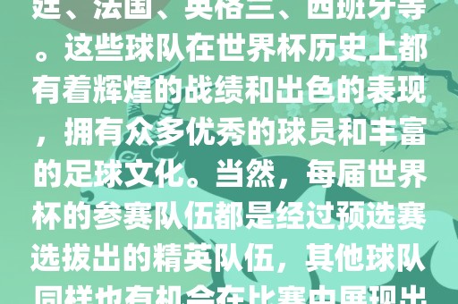 仅供参考,如需了解更多关于世界杯强队的信息,建议查看最新的新闻报道或相关足球分析文章。